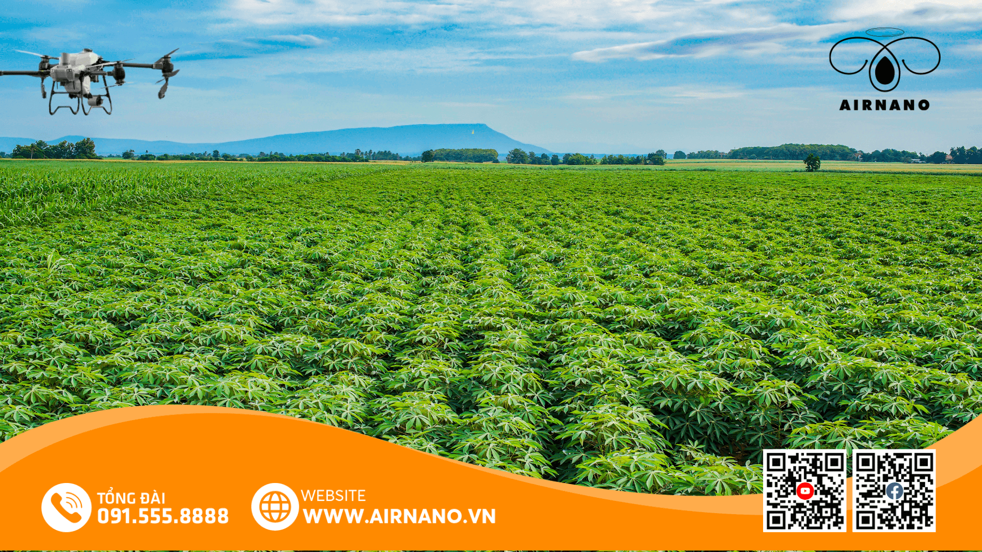 Airnano cung cấp giải pháp máy bay nông nghiệp không người lái giúp phun thuốc trừ sâu bệnh (đặc biệt hiệu quả với bệnh khảm lá), phun phân bón lá một cách nhanh chóng, chính xác, tiết kiệm chi phí và bảo vệ sức khỏe.