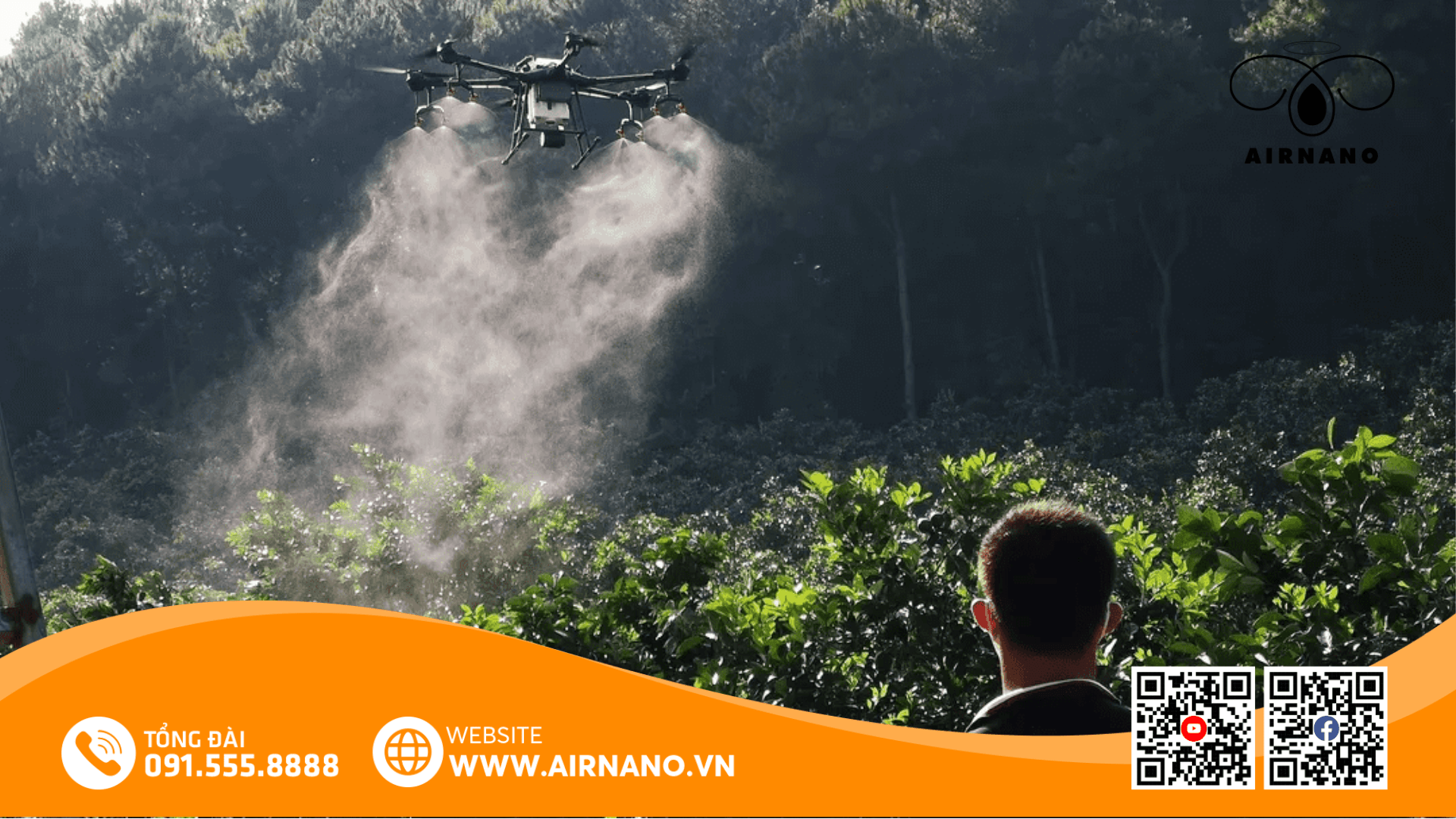 Đây là giải pháp công nghệ cao, thường được áp dụng cho các trang trại nhãn quy mô lớn, chuyên canh. Máy bay nông nghiệp mang theo bồn chứa nước và hệ thống phun sẽ bay theo lộ trình được lập trình sẵn để tưới cho cây.